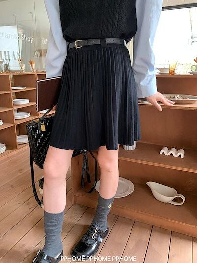 2024秋冬 スカート ミニ丈 ハイウエストベルト付き 高校生 学生 脚長効果 美脚効果 細見え かわいい風 おしゃれ キュート フレンチ 甘め カジュアル春黒白韓国系ファッションレディースお出かけ | HUG-L