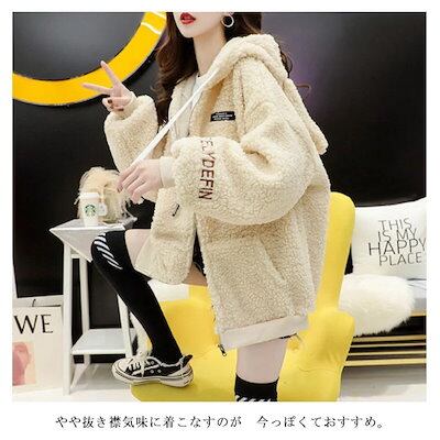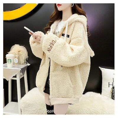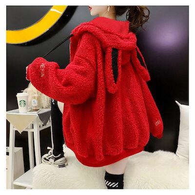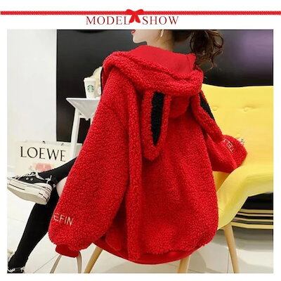 速達!暖かい ボアブルゾン レット フード付き おしゃれ 兎耳 アウター ジャケット 防寒 秋冬 パーカー フリース もこもこ オーバーサイズ ゆったり M L XL 2XL レディース | HUG-L