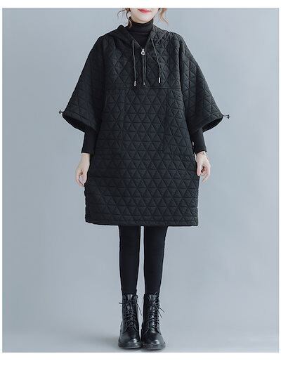 レディース チュニック ロング コーデ 体型カバー 通学 可愛い チュニック ロング丈 無地 ゆったり 冬 カジュアル風 パーカー 大きいサイズ 春 パーカーワンピース キルティング ロングパーカー | HUG-L