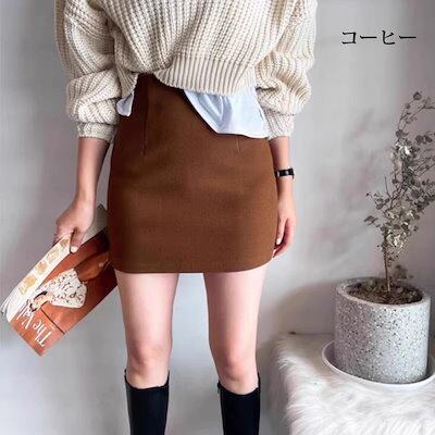 ミニスカート スカート レディース タイトスカート 秋冬 無地 aラインスカート ミニ丈 台形 aライン 可愛い タイト 裏地付き ファスナー お洒落 ハイウエスト ウール調 台形スカート ミニ ボト | HUG-L