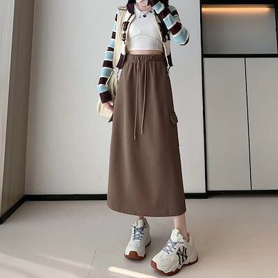 【急速出荷】【2枚購入で 2oo円OFF! 】2024春夏新作 着痩せ スカート ロングスカート ハイウエスト Aライン スタイルアップ カジュアル 運動 セミロング スリット タイトスカート | HUG-L