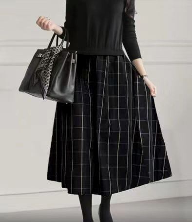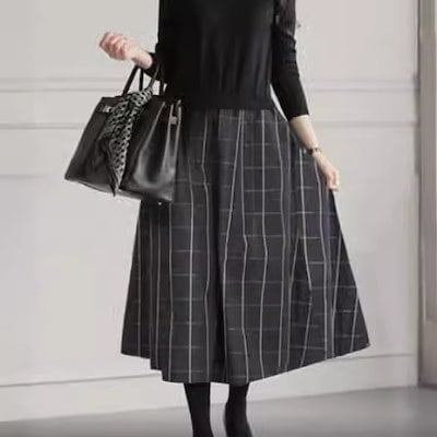【超人気好評 急速出荷】日系 ワンピース秋冬 新商品 長袖 大きめサイズ ゆったり ニット切り替えワンピース ロングワンピース シャツワンピース 着痩せ レディースファッション 韓国ファッション | HUG-L