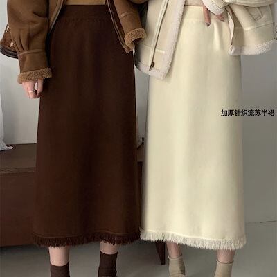 人气新作マキシスカートロングスカートニット半身スカート秋冬ハイウエストロングセクションストレートスカートセミロング フレアスカートタイトスカートチュールスカートミニスカート