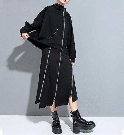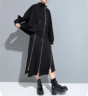 パーカー レディース 長袖 斜めジップジャケット ジャケット アウター 長袖 羽織り ブルゾン ショート丈 アシンメトリー スタンドカラー 斜めジップ ストレッチ 変形 秋 冬 無地 モード系 個性的 | HUG-L