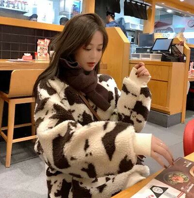 ボアパーカーボアプルパーカーパーカ牛柄ボアプルパーカーボアブルゾンレディースクルーネック無地トップス長袖プルオーバーもこもこふわふわボアコート長袖ボア厚防寒コート冬ゆったりトレーナーあったかショート丈 | HUG-L