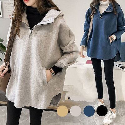 パーカー スウェット パーカー 体型カバーチュニック パーカー ゆったりスウェット マウンテンパーカーパーカー レディース スウェット 秋冬 プルオーバー パーカー トップス 長袖 フード付きキルティ
