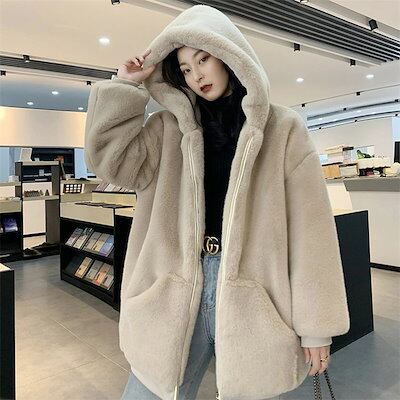 コート レディース 冬 ボア ボアパーカー 秋冬 ボアコート パーカー アウター ボアアウター ブルゾン ドロップショルダー 大きいサイズ ジャケット ショートコート 防寒 大人 フード付き 前開き | HUG-L