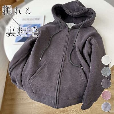 パーカー レディース メンズ 裏起毛 ジップパーカー リース 裏ボア 秋冬 暖かい 長袖 トップス フーディー ジップアップ ルームウェア ジャケット ジャージ アウター ボアパーカー ポケット付き | HUG-L
