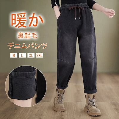 デニムパンツ レディース ストレートパンツ ロング ロングパンツ デニム ズボン パンツ 裏起毛 裏ボア ポケット付き ドロスト ジーンズ ストレート 防寒 冬 裏フリース 暖かい パンツ きれいめ | HUG-L