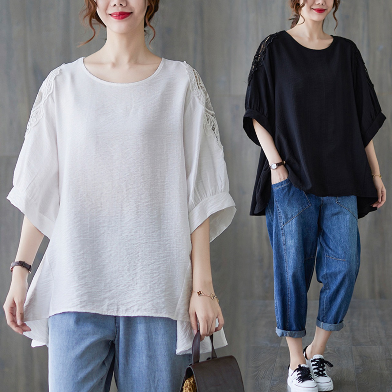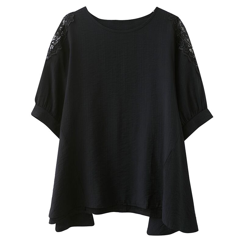 初回送料無料 オーバーサイズ ゆったりパッチワークレース半袖トップス レディースファション商品