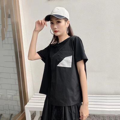 純綿tシャツ韓国ファッションレディース夏服半袖トップス黒白丸ネック福袋