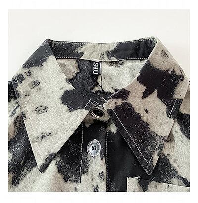 プリント柄 ブラック グレー 涼しい 半袖 レースアップ ホルスタイン柄 切り返しあり カジュアル 海辺 リゾート 旅行 バカンス S M L XL アロハシャツ レディース ショートシャツ トップス | HUG-L