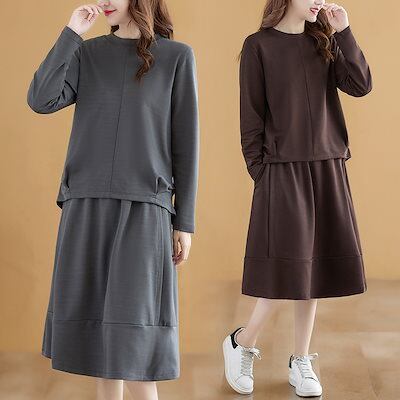 2024春服レディース大きいサイズスウェットセットアップ上下二点韓国ファッションカジュアル長袖トップススカート