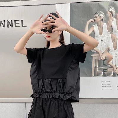 2024日系暗い風半袖tシャツレディース夏服クルーネックトップス韓国ファッションデザイン黒白無地