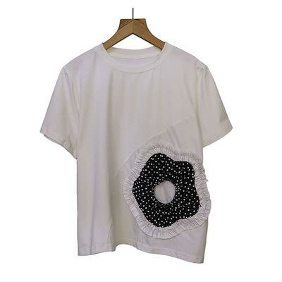 2024日系暗い風ドット半袖tシャツレディース夏服韓国ファッションデザインりったいフラワー可愛いトップス