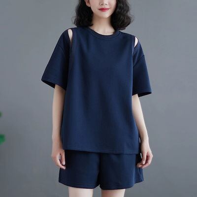 涼しく楽ちんセットアップ スウェット上下セット セットアップ 大きいサイズ レディースウェア/ストラップレス半袖トップス/ショーツ/ツーピースセット