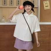 韓国ファッション ブラウス 人気 半袖 tシャツ 半袖 レディース 着痩せ 綿麻 小清新 シャツ レディース トップス シアーシャツ