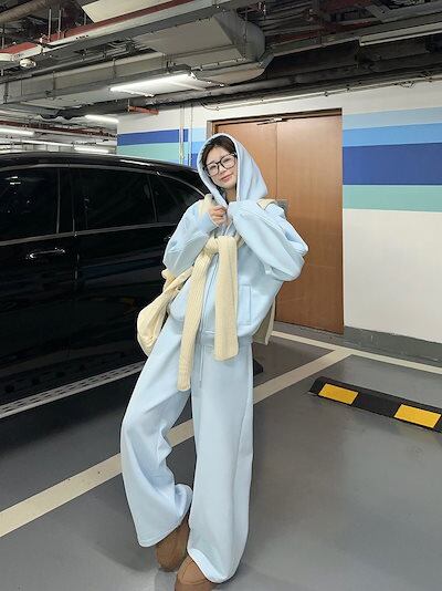 2024 秋冬 韓国 かわいい レディース 厚手裹起毛フード付き長袖アウターレトロセット_白フーディーブルサイズ丈トップス春カジュアルスポーツファッション系通学学生袖お出かけアップシルエットトラック | HUG-L