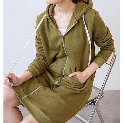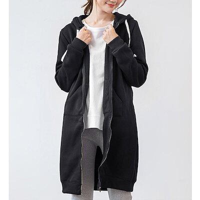 裏起毛 パーカー ロング丈 保温防寒 レディースパーカー トップス ファスナー付き フード