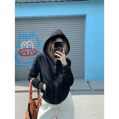 今年 秋冬 2type 韓国 厚手裹起毛かわいい レディース フード付きアウターフーディーロゴブルゾン長袖シルエットトップス冬カジュアルファッション系サイズお出かけフル丈高校生 通学大学生 | HUG-L