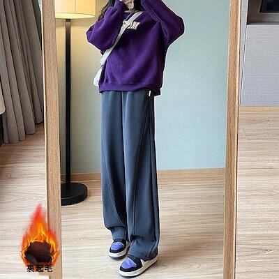 レディース グレー ワイドパンツ 裏起毛 スウェットパンツ 秋冬 ストレート モップパンツ ジョガーパンツ