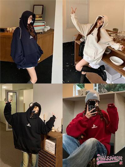 選べる2タイプ 薄手 厚手 裹起毛 パーカー フード 羽織り スタイルアップ 女っぽ きれいめ 大人っぽ 上品 ゆったり カジュアル ストリートシルエットスリーブサイズ通学 学生ファッション 秋冬春 | HUG-L