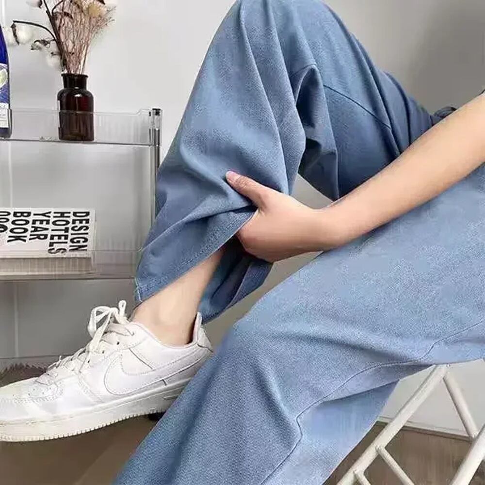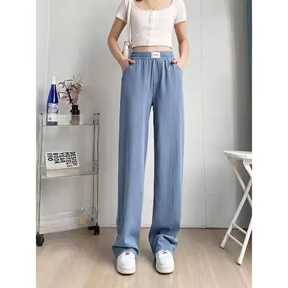 女性用ハイウエストドレープデニムパンツ,カジュアル,アイスシルク,クール,そよ風,薄いスタイル,デニム,夏,新しい,2024 ボトム ワイドレッグ バギーパンツ T240901094810_01 | HUG-L