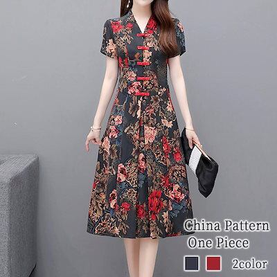 ワンピース レディース チャイナ柄ワンピース 50代 アウトドア パジャマ 安い 前開き 薄手 20代 きれいめ カジュアル トップス スカート ルームウェア ニット Aライン 夏 半袖 大人 40代