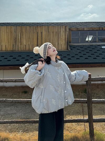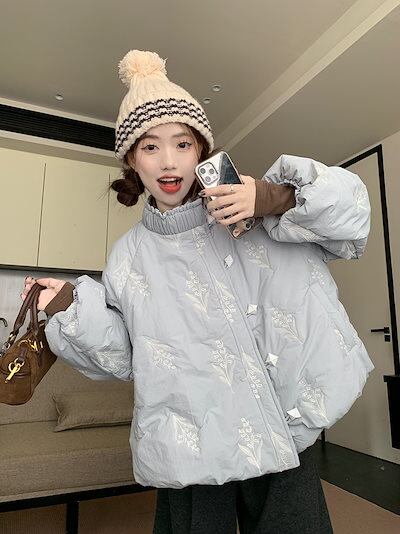 ふっくら中綿 あたたかい 冬 防寒あったか暖かいかわいい ブルゾン厚手アウターBF風無地羽織るハイネックファッション系大人ゆったりカジュアルストリートスタンドネックにサイズ丈シルエット秋レディース_白 | HUG-L