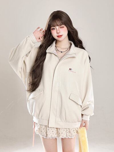 2024 秋冬 韓国 かわいい レディース アウター ブルゾン お出かけ 長袖セクシーベースシルエットトップスサイド冬カジュアルファッション系サイズお出かけネックフル丈スリーブトラック