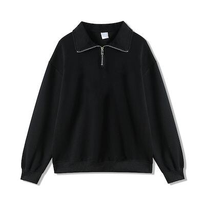2024 秋冬 2type 裹起毛トップス長袖 かわいいK-POPTロング黑白レディース韓国風ロゴ衣装カラールーズゆったりカジュアルハーフおしゃれサイズスリーブシルエットファッション系シャツ春 | HUG-L