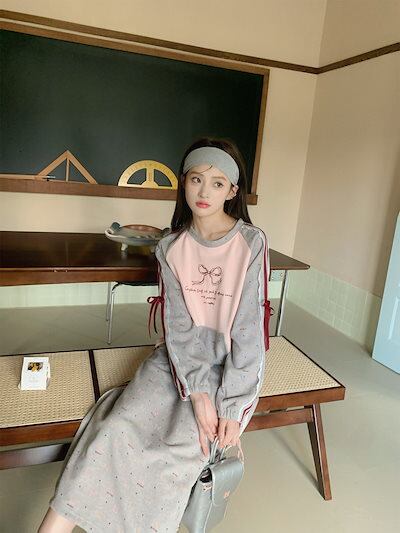 2024 秋冬 トップス 長袖 かわいいラウンドネック Tシャツ レディース 韓国風 ルーズストレート ゆったり 無地 カジュアル おしゃれサイズ シルエットファッション系シャツ衣装お出かけ | HUG-L
