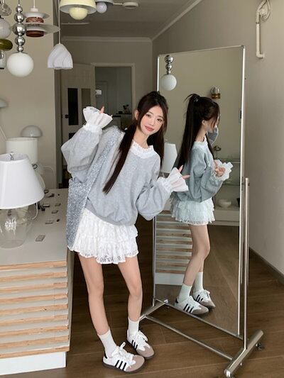 2024 秋冬 トップス 長袖 かわいいラウンドネック Tシャツ レディース 韓国風 ルーズ ゆったり 無地 カジュアル おしゃれサイズルーズプルスリーブ シルエットファッション系シャツ衣装フレンチ | HUG-L