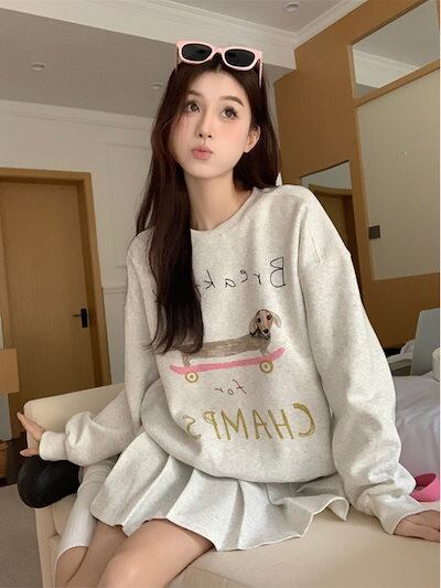 2024 秋冬 トレンド トップス 甘辛MIX 長袖 かわいいTシャツレディース韓国風 衣装 ルーズ ゆったり カジュアル おしゃれサイズスリーブ シルエットファッション系サイドシャツ フット春 | HUG-L